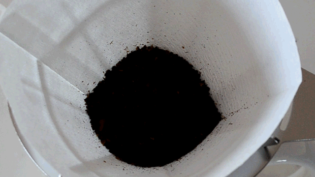 ドリップしてペーパーフィルターを持ち上げると・・・、ドリッパーにはほとんどコーヒーが付いていません。