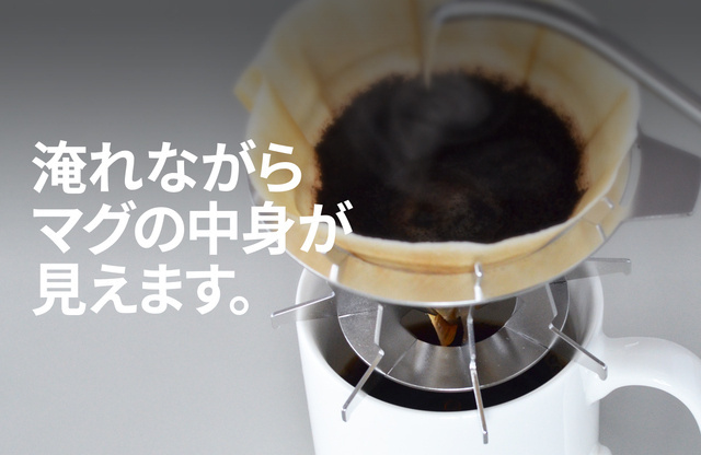 OTMバートドリッパーSはドリップ中に「今、コーヒーがどのくらいマグに落ちているのか?」が視認しやすくなっています。