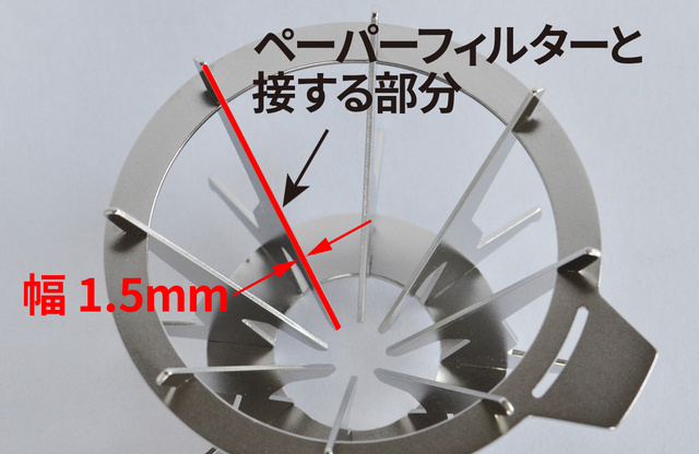 OTMバートドリッパーSがペーパーフィルターを支える部分は幅わずか1.5mm!だからドリッパーにコーヒーが付着する部分がとても少なく洗うのも簡単です!