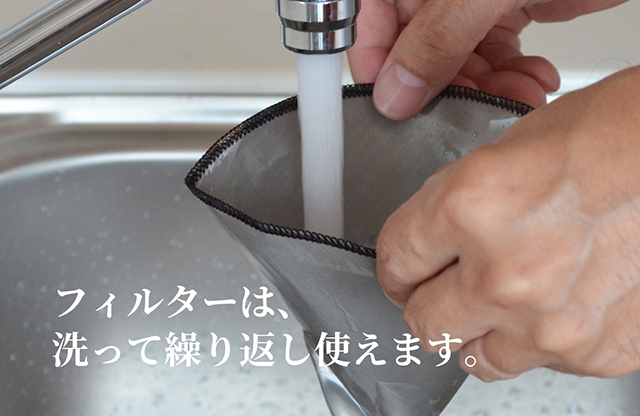 - 繰り返し使えてペーパーフィルター不要、ゴミを出さない。