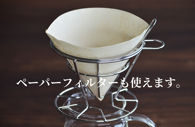また、ドリッパーはステンレスワイヤー製です。樹脂製や陶器製のような器具側(ドリッパーの穴の数や大きさなど)で抽出スピードをコントロールしないシンプルな構造です。その特性として、雑味を抑えたすっきりとした味わいになると言われています。