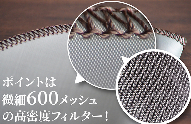 「STメッシュドリッパーM」は、ペーパーフィルターの代わりに、極細ステンレス線で編んだ微細600メッシュの高密度な金網フィルターでろ過するドリッパーです。600メッシュとは、25.4mmの長さの間に、網目の数が600あるということです。