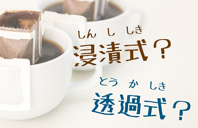 ドリップバッグコーヒーの抽出方法は、浸漬式と呼ばれるコーヒー粉をお湯に浸して抽出する方法です。