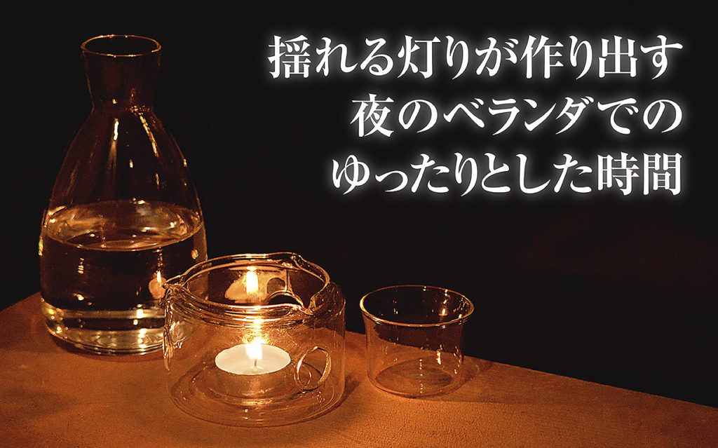 - キャンドルの灯りと温かい燗酒を「ゆるり」と愉しめる、キャンドルランタン&酒器のセットです!